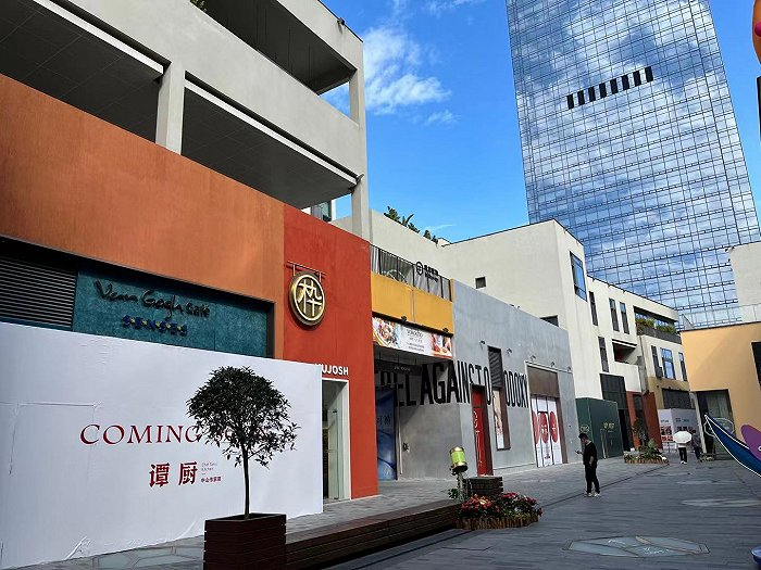 界面新闻走访发现,深业上城购物中心内部两端,不少商铺处于围挡遮掩状态、商家还未入驻;户外小镇因其独特的蒙德里安设计风格成为网红打卡地,该业态由二十多栋3-4层的小型建筑组合成村落,连通笔架山和莲花山公园,然而3-4层独立建筑的形态也增加了招商难度,户外小镇有不少商铺处于未招商或者商家未入驻状态。