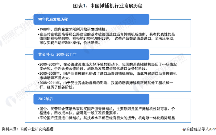 1、中国摊铺机发展历程:大致经历了三大发展历程