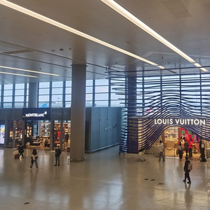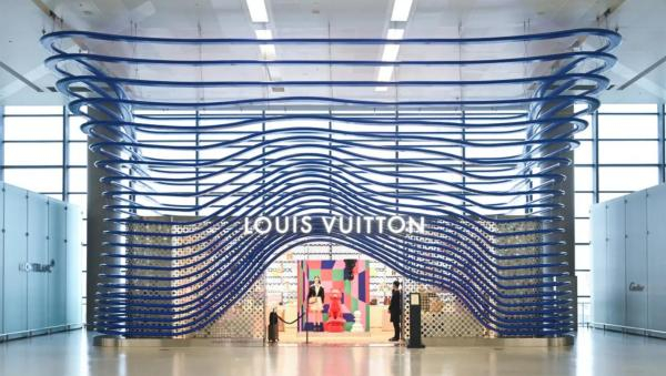 就在本月,虹桥机场t2航站楼一线品牌大道上,以“漩涡”命名的路易威登(lv)虹桥机场店重装开业。该店的操作极特殊,属于先占位开出“初代”店面,随后深化设计并敲定终版方案、最后重新装修取代“前店”。