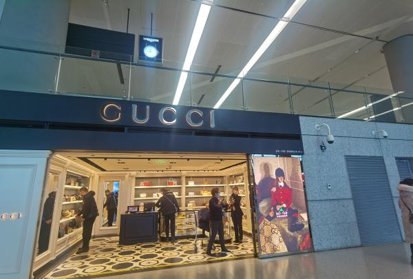 前有lv,后有古驰(gucci)。记者在虹桥机场t2一线品牌大道看到,目前开出的古驰店还只是“第一阶段店铺”,今年年内,该店将迁往斜对面更好位置,且正式店面的形象值得期待。据介绍,目前入驻一线品牌大道的18家奢侈品牌专卖店都在酝酿品牌调整,年内首店比例将达50%,两年内品牌直营店比例会超过70%,密集度堪比上海市中心核心商圈。
