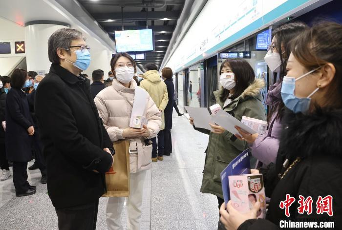 2021年12月31日京港地铁3条新线(段)开通当日,京港地铁总经理邵信明与沿线居民及乘客交流。 京港地铁供图