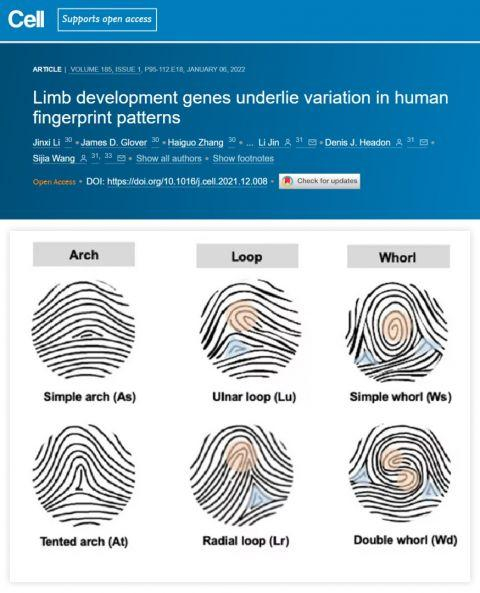 2022年1月7日,一项由复旦大学与中国科学院上海营养与健康研究所发表在《细胞》杂志上的研究表明,指纹中的“斗”和“簸箕”虽然无关“穷达”,但却隐含着健康信息。这是因为皮肤纹路受关键肢体发育基因影响,与生长发育及疾病有关。