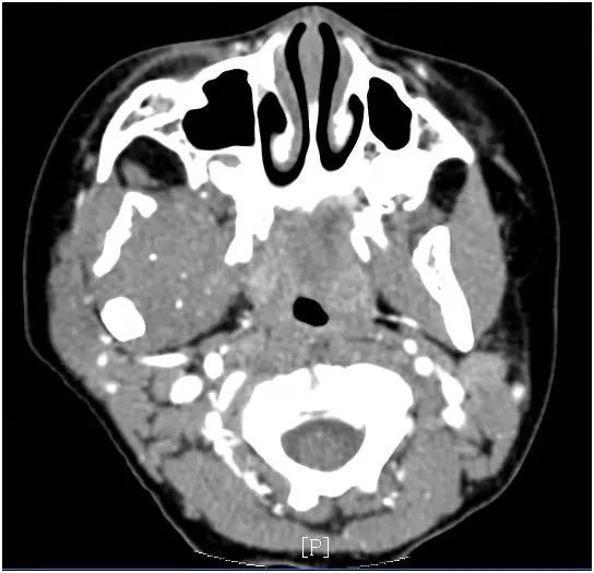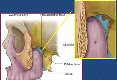 外院ct和核磁检查,发现张不开嘴是因为支配张口的“翼内肌”和“翼外肌”以及“颞下颌关节”受到了肿瘤侵犯。转至上海市儿童医院耳鼻喉科就诊后,最终确诊为翼腭窝肿瘤侵犯上述张口肌肉和关节。翼腭窝是由上颌骨后壁、蝶骨翼突及颚骨垂直板这些骨性结构围成的狭小空间。乐乐的翼腭窝肿瘤侵不仅损伤了颞下颌关节,还侵犯了附着于蝶骨翼突的翼外肌和翼内肌这两组控制张嘴的肌肉,才导致了他饭来难张口。要彻底根治必须将其切除。