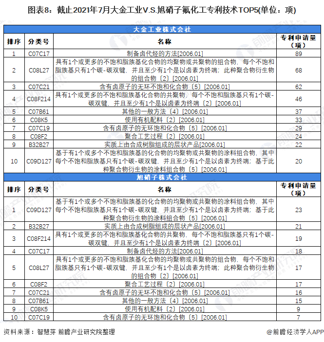 原标题:独家!大金工业VS旭硝子氟化工技术布局对比(附专利总量对比、合作申请对比、重点专利布局对比等) 来源:前瞻产业研究院
