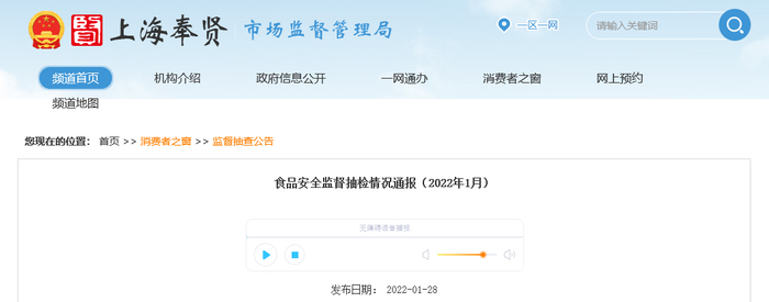 中国质量新闻网讯 2022年1月28日,上海市奉贤区市场监督管理局发布食品安全监督抽检情况通报(2022年1月)。