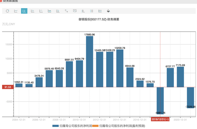 御银股份2004年以来归母净利润一览