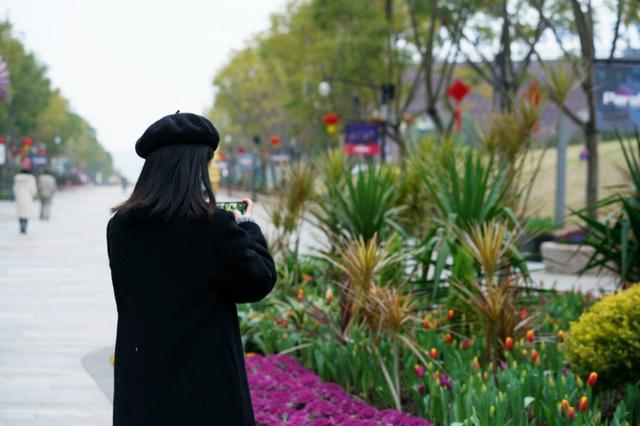 春节将至,位于寸滩国际新城的丝路花街变身花海,整条街被花卉绿植装点,呈现一派花团锦簇的喜庆祥和气氛,吸引了众多市民前往打卡。