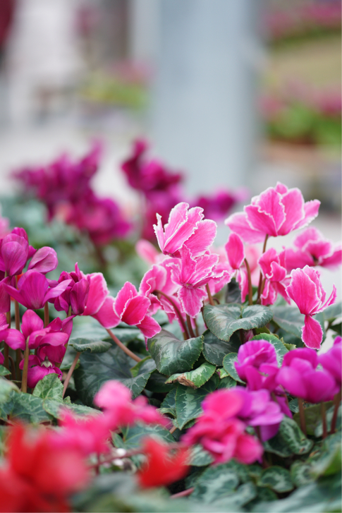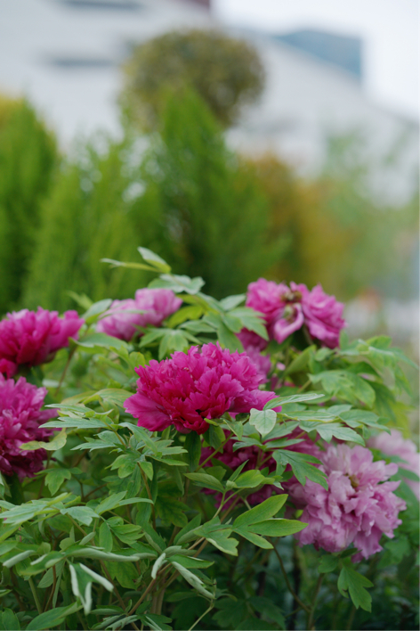 丝路花街入口,中原花卉艺术展示区拉开序幕。象征欢迎贵宾到来的仙客来花雕热情地迎宾,同时有醒目的丝路花街和虎年标志做指引,可谓强势吸睛。而旁边红蓝相间的瓜叶菊波浪形花带,则像波浪般柔美地向前延伸,吸引人跟随着向前一探究竟。牡丹是中国的国花,花大且香,是名副其实的“国色天香”。