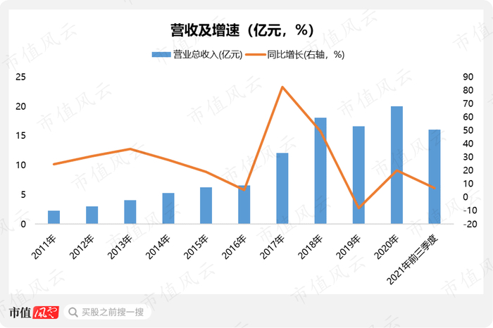 2020年,雅本化学实现营收20.03亿元,同比增长20.36%;2021年前三季度,实现营收16.04亿元,同比增长7.08%。