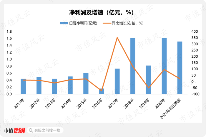 随着营收的增长,归母净利润也明显改善。2020年,雅本化学实现归母净利润1.61亿元,与2018年基本相当,成为雅本化学上市以来的最好业绩,2021年前三季度,实现归母净利润1.51亿元。