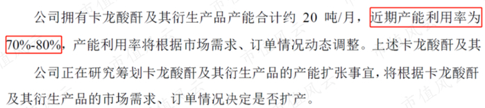 雅本化学在回复函中还不忘多句嘴,称公司“正在研究筹划卡龙酸酐及其衍生产品的产能扩张事宜”。风云君闲着也是闲着,就替各位韭菜多嘴问一句:您当前的产能利用率为70%-80%,并不算饱和,现在就研究扩产能,是否早了点呢?