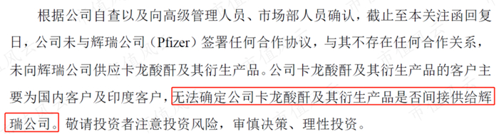 不过,这点小心思可瞒不过交易所,立马发来关注函询问:既然与辉瑞公司不存在直接关系,那是否存在间接向辉瑞公司提供卡龙酸酐产品的情形呢?