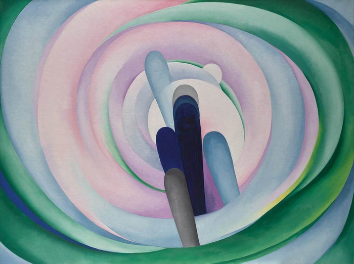 乔治亚·欧姬芙,《灰蓝和黑粉的圆圈》,1929,布面油画,91.4 x 121.9cm