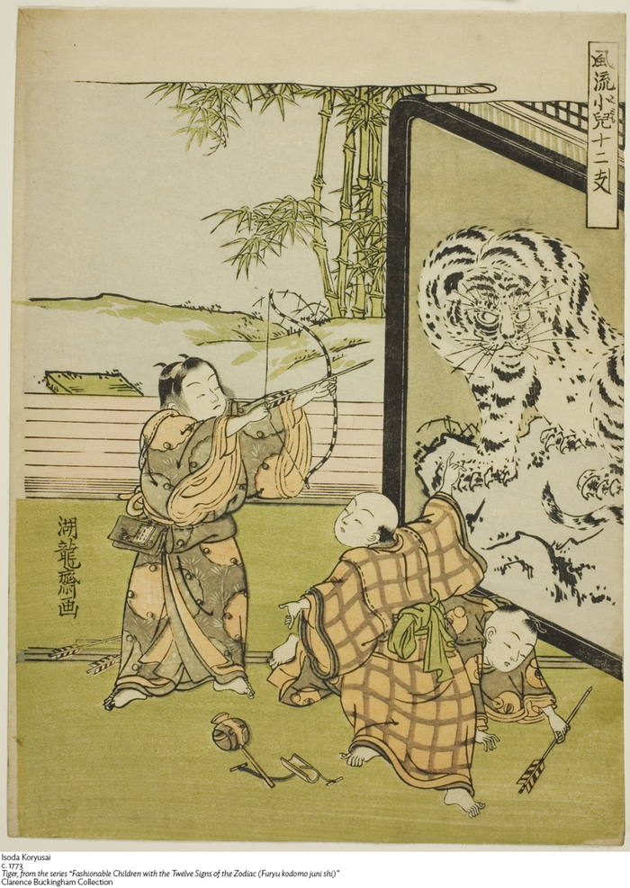 礒田湖龙斋,《虎》(出自“风流小儿与十二生肖”系列),1773年,芝加哥艺术博物馆,馆藏编号:1925.2209