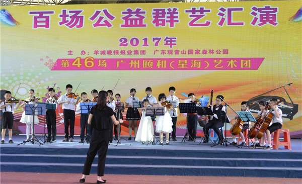 其中,百场公益群艺汇演始于2015年10月,自那时起,公园与由羊城晚报报业集团每周日下午共同推出大型公益惠民文化项目,百场公益汇演得到广东省各大文艺团体的积极响应,以及广东文艺界的高度评价。在表演形式上做到了种类多样、雅俗共赏,满足群众不同层次的文化需求。经过数年的发展,已成为一个闪亮的公益文化品牌。