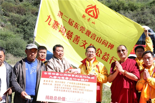 2017年8月8日,四川省阿坝州九寨沟发生7.0级地震。面对灾情,观音山发起“观音山问禅公益文化系列活动之九寨沟灾区慈善文化公益行”活动。观音山将爱心企业和善心人士善款及物资等折算共计13万元,捐赠给四川阿坝州九寨沟县树正寨村民,实现了慈善精准援助,得到了社会各界的广泛赞誉。