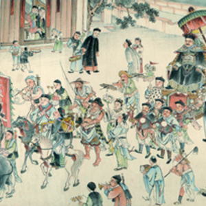 四川省绵竹市博物馆收藏的长卷年画手稿《绵竹迎春图》,是一件生动描绘四川清代传统民俗,内容十分丰富的文物珍品。