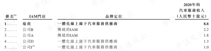 而公司目前的收入规模也遥遥领先排名第四的京东京车会或者天猫养车(风云君根据招股书推测)。2020年,途虎的收入达到88亿元。排名第二的传统IAM,收入仅有途虎的1/4。