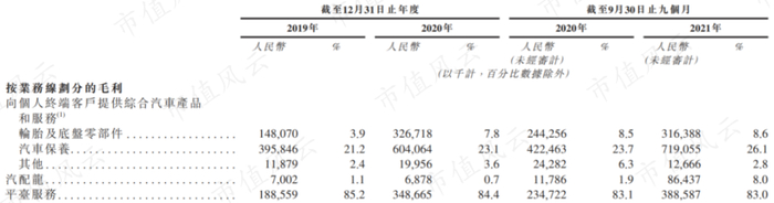 途虎的收入主要来自向用户销售汽车产品和服务。去年前三季度收入84.4亿,同比增长42%,2020年增速为24%,增长较快。