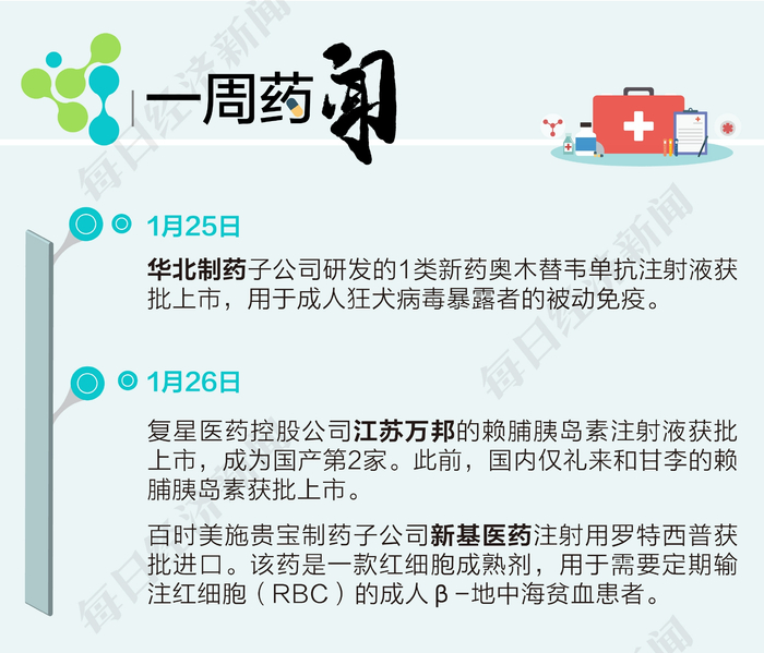 1月26日,复星医药(600196.SH)全资孙公司江苏万邦生化医药集团有限责任公司(以下简称江苏万邦)的赖脯胰岛素注射液获批上市,这是国内第2家国产赖脯胰岛素注射液,可用于糖尿病患者的治疗。