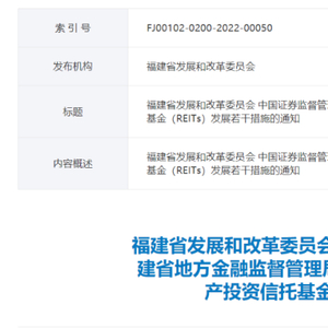 为促进福建省基础设施领域不动产投资信托基金(REITs)发展,省发改委、福建证监局、省金融监管局制定了《福建省促进基础设施领域不动产投资信托基金(REITs)发展的若干措施》,经省政府同意,现印发给你们,请结合实际认真落实。