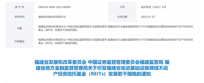 《福建省促进基础设施领域不动产投资信托基金(REITs)发展的若干措施》政策解读