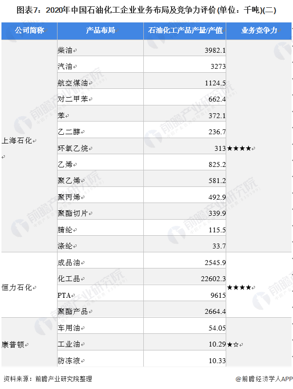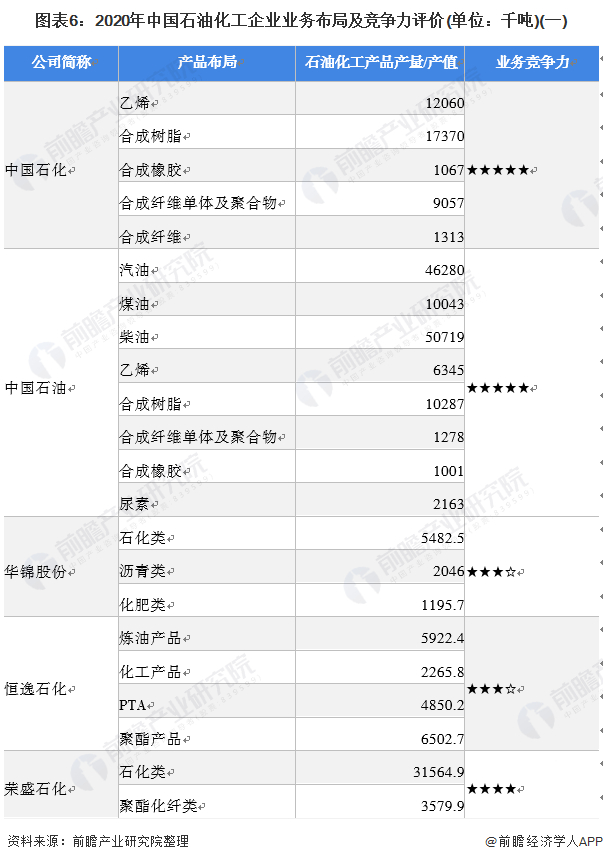 本文核心数据:石油化工企业竞争格局,石油化工细分市场