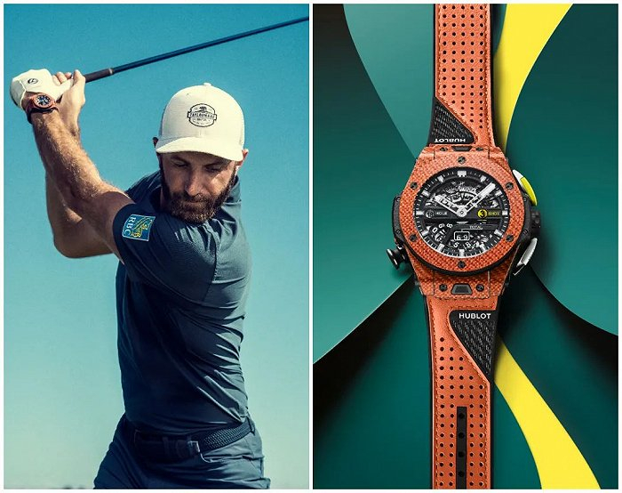 宇舶表深入高尔夫运动领域,推出了100枚全新限量版 Big Bang Unico 橙色碳纤维高尔夫腕表。2017年,宇舶表携手高尔夫球手 Dustin Johnson(达斯汀 约翰逊)打造了全球首款机械高尔夫腕表,即 Big Bang Unico 高尔夫腕表。