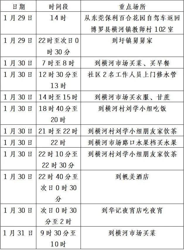 根据2022年1月31日深圳市报告1例新冠肺炎确诊病例,其病例外溢的密切接触者在我区有活动轨迹,如在以下时间段有到过相关区域活动的人员,请按相应要求自觉落实防控措施并尽快开展1次核酸检测。