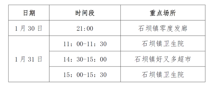 石坝镇通报涉疫地区重点人员活动轨迹: