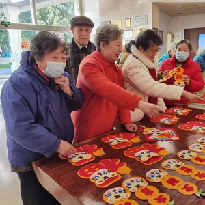 “虎年到了,这个小老虎好好看,这个红的,你看,好吉祥!”连日的阴雨终于停歇,不少老人们走出户外,拿着养老院提前准备好的福字、窗花、老虎饰品进行布置,营造出浓浓的年味。