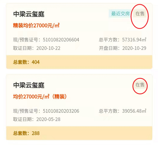 再看与中海·浣云居直线距离不到两公里的中梁·云玺台,这个楼盘同样顺销,从2020年5月第一批次取证开盘以来,中梁·云玺台销售时间已横跨三个年头,持续时间长达20个月之久(已基本修成现房)。