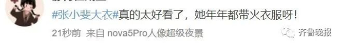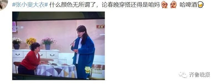 比起沈腾的“反向案例”,张小斐今年依旧靠谱。去年春晚张小斐的衣服就登上热搜,今年,大家再次讨论起#张小斐的大衣#。
