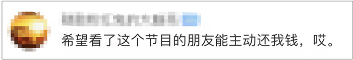 还有网友就没那么幸运了,表示希望欠债的人看到这个小品能主动还钱,也有人建议千万不要往外借钱,还有人苦于不好意思开口……