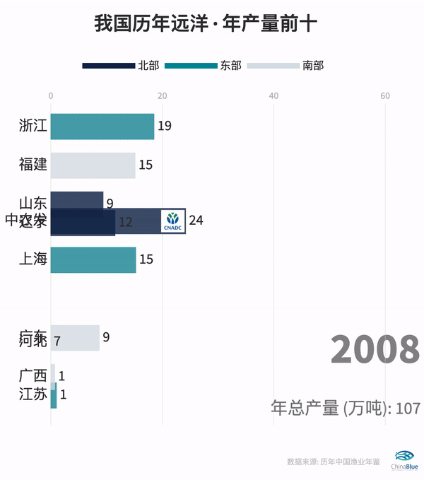 注:渔业年鉴中的「海洋捕捞」是指在我国经济海域内部进行捕捞作业,而远洋捕捞是指去公海或者别国专属经济区内进行捕捞作业