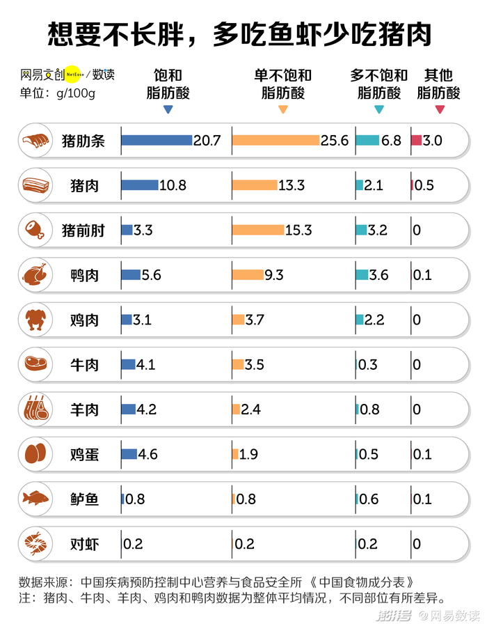 相比之下,鱼虾不仅脂肪含量低,还以不饱和脂肪酸为主,对担心吃胖的人来说,更友好。