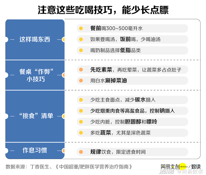 当然,除了管住摄入的食品数量、避开热量炸弹,还有一些饮食小技巧,也能帮你减少增胖的几率。
