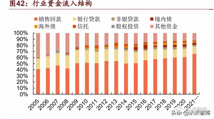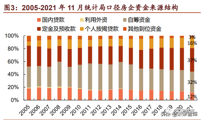 其他资金来源,根据统计局口径可再细分为定金及预收款、个人按揭贷款以 及其他到位资金,前两项与房地产销售强相关的类别在其他资金来源中占比 达 90%以上。