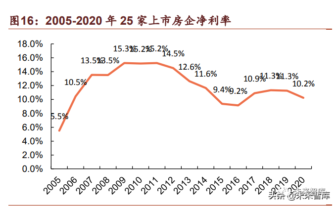 预期发展:我们认为 2021-2022 年营业收入会保持低速增长,假设 2021/2022 年 营收同比增速为 5%。基于前述预测 2021 年商品房市场销售额预估同比增速为 4.1%,2020 年行业营收同比增速为 8%,而营业收入是滞后确认的销售收入,无 论从趋势上或参考销售收入增速,2021-2022 年的营收规模增速均应在 10%以内, 我们保守假设两年增速均为 5%。