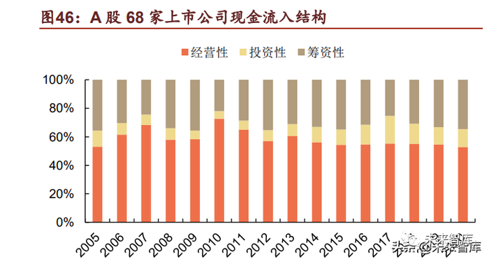 为了进一步挖掘上市公司的资金流变化,我们将各公司的现金流拆解为筹资与经 营两部分,将投资活动现金流纳入经营部分,一方面因为投资活动现金流在流入 流出端占比均较低,另一方面投资活动现金流中有较大占比为房企间往来款,多 用于非并表联合营项目的各类款项支付,其本质仍是经营性活动,故一并纳入经 营类现金流范畴内。