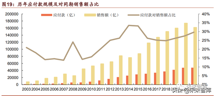 从行业经营实操来看,房企供应商对这类应收账款的承受能力通常在半年左右, 由此来看,虽然应付账款可以一定程度减轻房企的资金压力,但所需支付资金仍 需在一定期限内偿还,从融资角度考虑,真正能对房企资金起补充作用的仅为每 期应付账款的净增值,对行业融资影响有限,因此未纳入本次资金链测算中。
