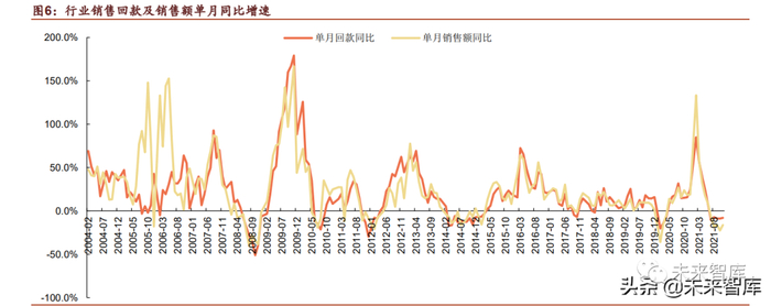 为消除不同时期行业规模对行业资金缺口的影响,我们使用资金净流入额与销售 回款规模作比,可以发现本轮低谷期行业资金紧张程度与以往处在相近的量级。2021Q3 的计算结果为-0.79,略好于过往水平。