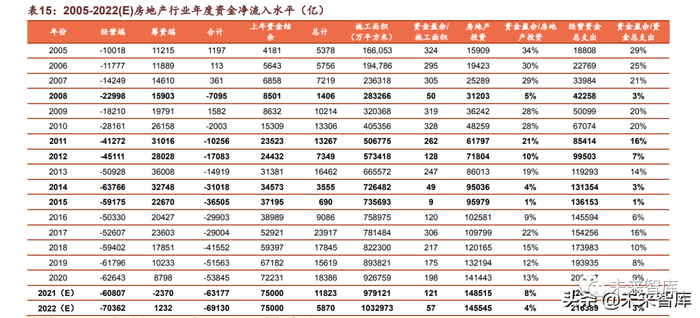 对于这一部分资金,我们认为由两部分组成,一部分为不发生利息费用的公司自 有资金投入,同样没有偿还本金的压力;另一部分为各类非标准化渠道的负债类 资金。我们假设其中公司自有资金占比 70%,来源于非标债务占比 30%,按 8% 计算年化利息,假设 2022 年各季度中其他资金新增额占比与近三年平均水平一致, 可得到其他资金的融资情况估算,并完成了统计局数据口径下的资金流入流出模型闭环。