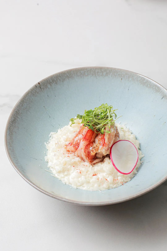 ▲滑动云吃茶香熏鸽肉、香煎比目鱼、海虾芝士意大利烩饭...... 图源/@奔驰