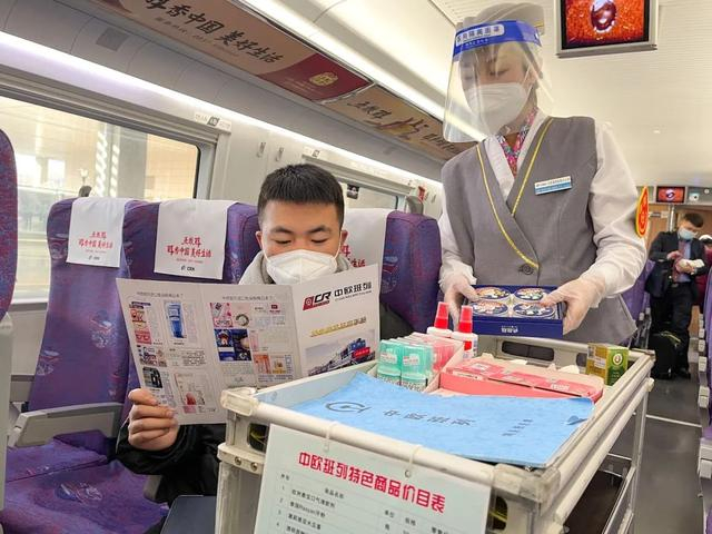 高铁中欧班列特色商品包括口气清新剂、眼霜、面膜、口红等生活用品和食品,产地包括泰国、法国等,价格实惠,受到不少旅客的青睐,让他们在乘车的同时轻松“买全球”,丰富背包中的“年货”选择。