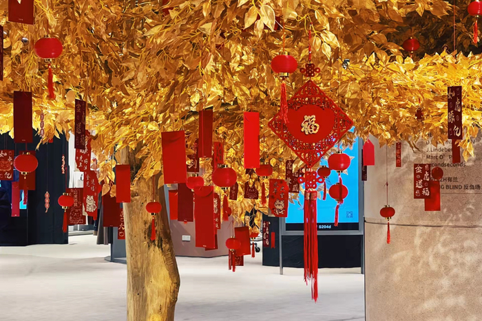 除了户外冰雪运动,商场内的新春活动更不容错过。2月2日至2月15日,绒化市集和春运年货市集将亮相商场,以潮流好物打造逛街好去处;同期,”绒榕祈福” 活动也在商场二层展开,灿金榕树悬挂新春红包及灯笼装饰,为消费者传递金虎纳福的美好祝愿。