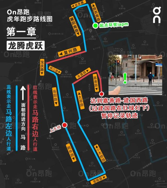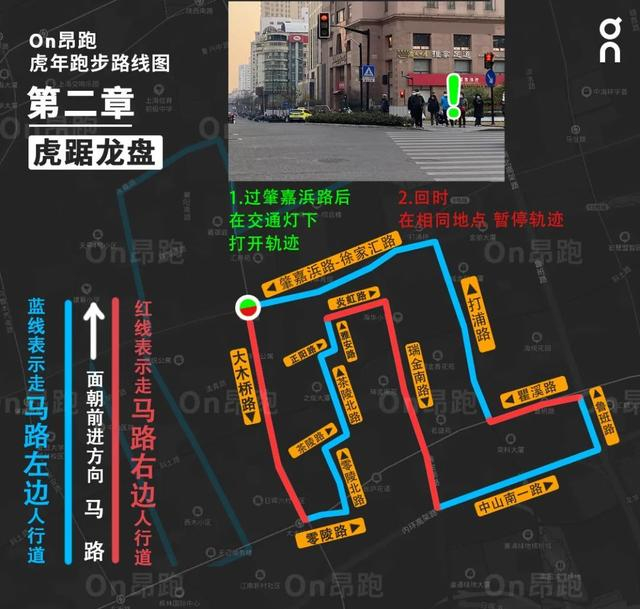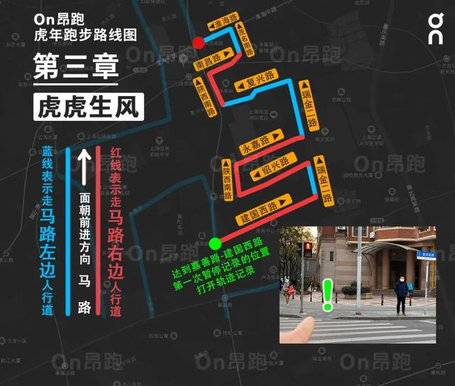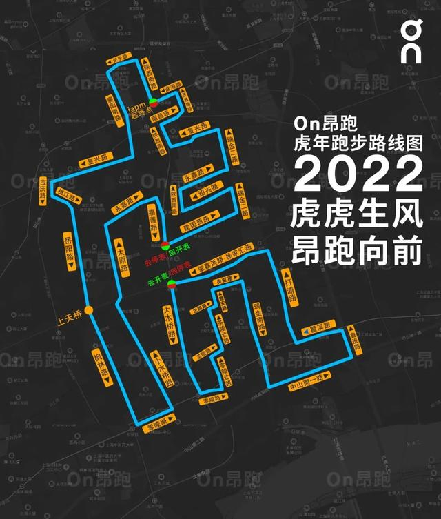 注意:在第一段与第二段路程之间,有350米的路段需要暂停记录轨迹,一直到下一个开始记录点。一定要注意路线图上两个暂停轨迹和重新记录轨迹的点,这对于“虎”字的完成非常重要!
