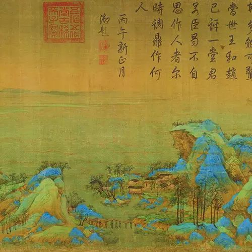 元代浦光在《千里江山图》的题跋中写道:“自可独步千载,殆众星之孤月耳。”他认为在青绿山水中,这是一幅众星捧月的画,前无古人,后无来者。这评价高得足以把王希孟放在独孤求败的位置,那么这幅画究竟好在哪里?为什么如此重要?