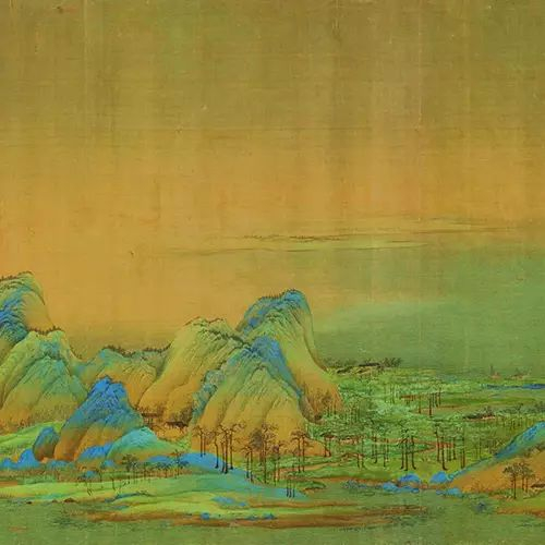抛开传奇性的因素,以一种客观学术的眼光来看,王中旭认为有以下两个重要方面:第一,它是青绿山水中面貌最出色的一件。整件作品设色以石青、石绿为主,着色面积大,饱和度高,这在所有传世的青绿山水中都是独一无二的。即使过了900多年,颜料依然保持很高的纯度,使整个画面鲜亮,透着皇家的辉煌气质。从绘画表面的一些细微剥落的地方可以看出,石青、石绿的颜料是很厚实的,这与传统的中国水墨或浅绛都差异很大,可以说是与水墨画法反向的另一个极端——将色彩用到极致。