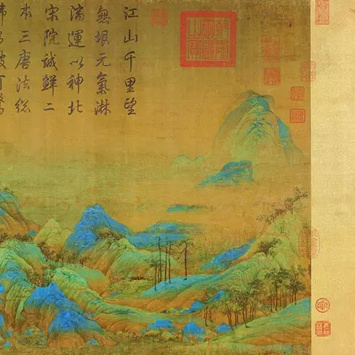 试想,当宋徽宗第一次缓缓打开卷轴,看到面前这幅绚烂的“江山图”时,应该是非常激动的。作为帝王,他欣慰坐拥这样的江山,作为书画爱好者,这幅画足以让他看到一个年轻人的才气,和自己治下画院、画学的丰硕成果。